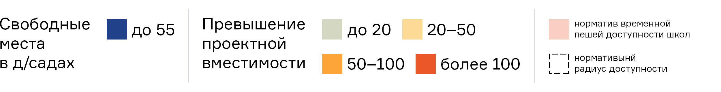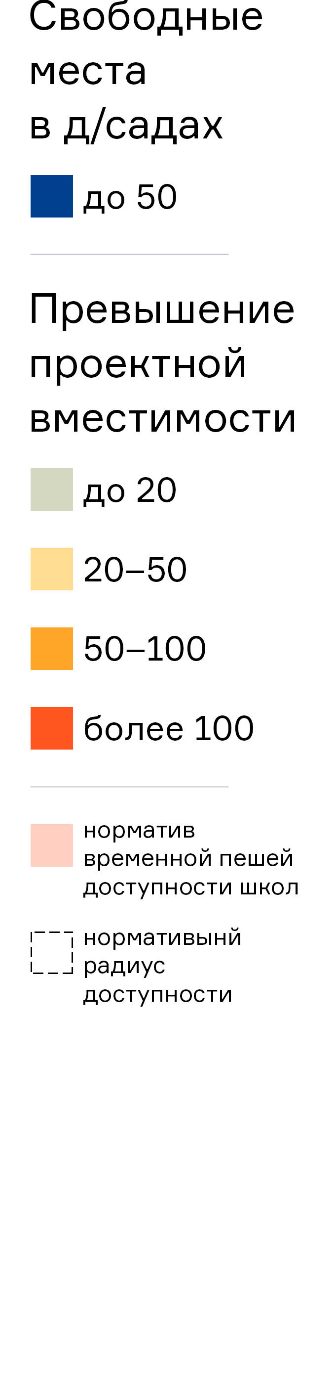 Для школ и детских садов учитывается численность населения в ячейке, доступность школ и детских садов и количество мест в них.