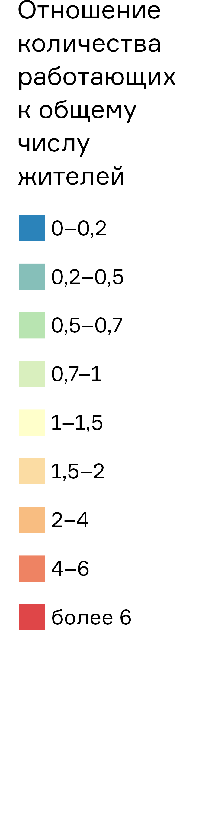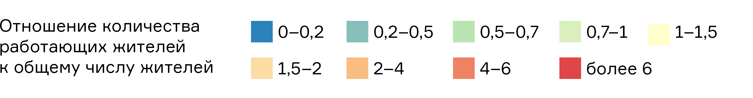 Для культурно-досуговой инфраструктуры и рабочих мест учитывается количество объектов, попавших в зону транспортной доступности — 15 минут на личном транспорте.